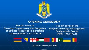 În data de 23 martie 2026 a avut loc ceremonia de deschidere a celei de-a XXVI-a serii a cursului postuniversitar de formare și dezvoltare profesională continuă „Planificarea, Programarea și Bugetarea Resurselor de Apărare” – ACT.676.19. și a celei de-a XXXI-a serii a cursului postuniversitar de formare și dezvoltare profesională continuă „Managementul proiectelor și programelor” – ACT 677.19.