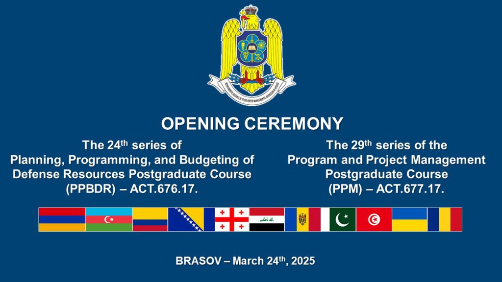 În data de 24 martie 2025 a avut loc ceremonia de deschidere a celei de-a XXIV-a serii a cursului postuniversitar de formare și dezvoltare profesională continuă „Planificarea, Programarea și Bugetarea Resurselor de Apărare” – ACT.676.17. și a celei de-a XXIX-a serii a cursului postuniversitar de formare și dezvoltare profesională continuă „Managementul proiectelor și programelor” – ACT 677.17.