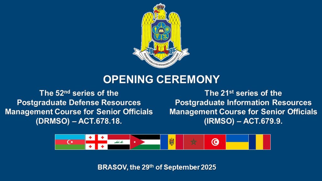 În data de 29.09.2025 a avut loc deschiderea celei de-a LII-a serii a cursului postuniversitar de formare și dezvoltare profesională continuă „Managementul Resurselor de Apărare pentru Personalul de Conducere” – ACT 678.18. și a celei de-a XXI-a serii a cursului postuniversitar de formare și dezvoltare profesională continuă „Managementul Resurselor Informaționale pentru Personalul de Conducere” – ACT 679.9