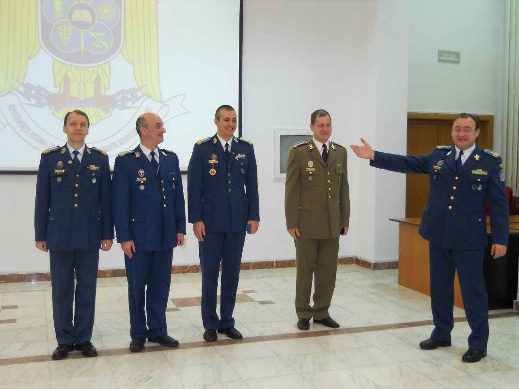 | În 03.01.2013 la Departamentul Regional de Studii pentru Managementul Resurselor de Apărare Braşov s-a desfăşurat ceremonia de înaintare în grad a ofiţerilor care au îndeplinit condiţiile de avansare, conform art. 45, lit.b din Legea 80/1995, privind statutul cadrelor militare. |