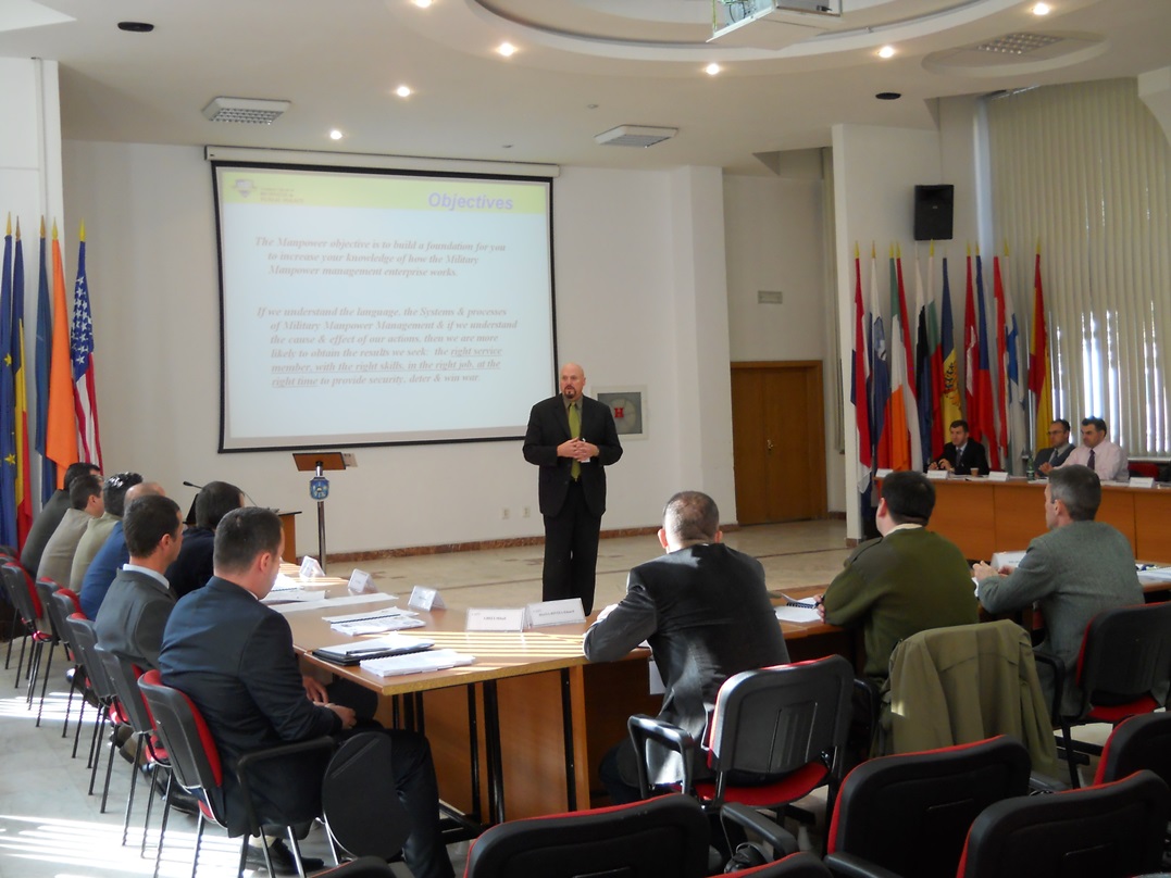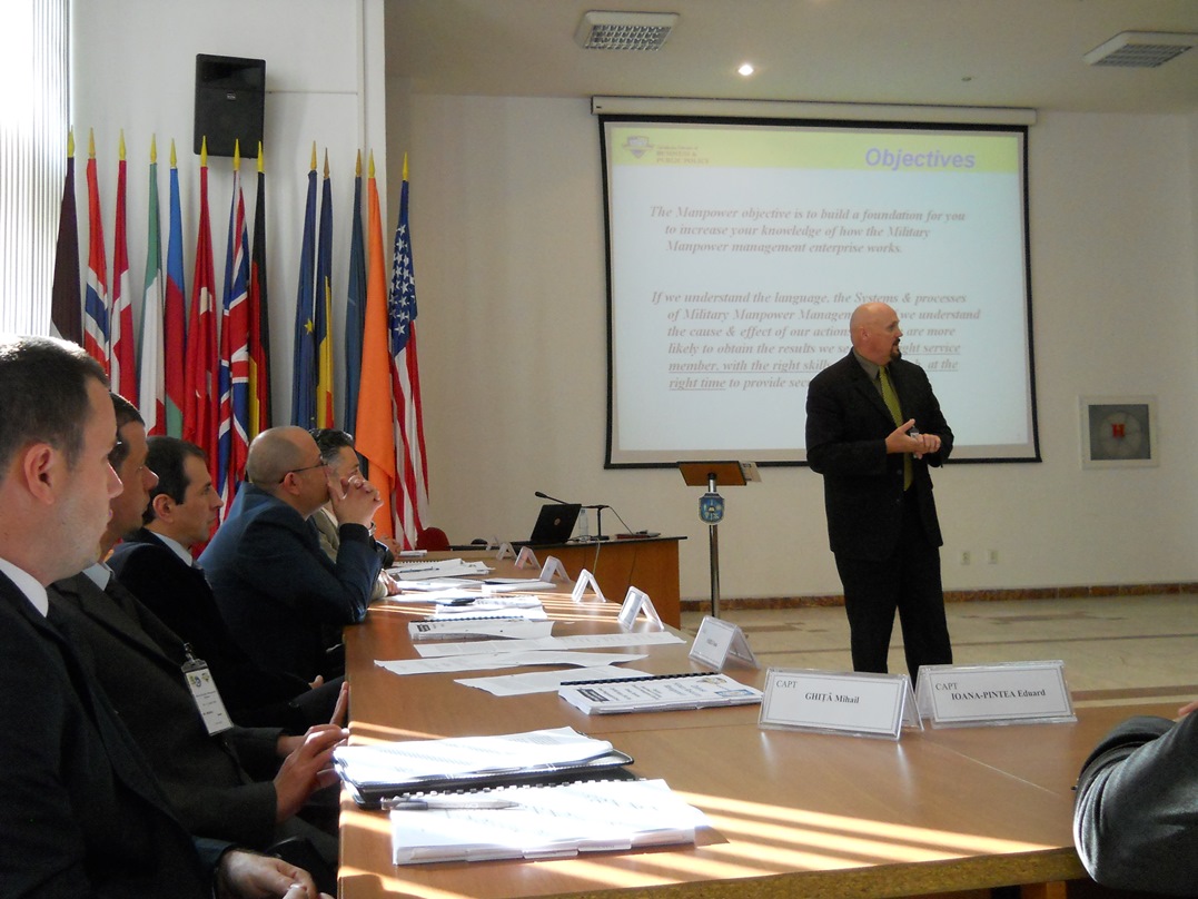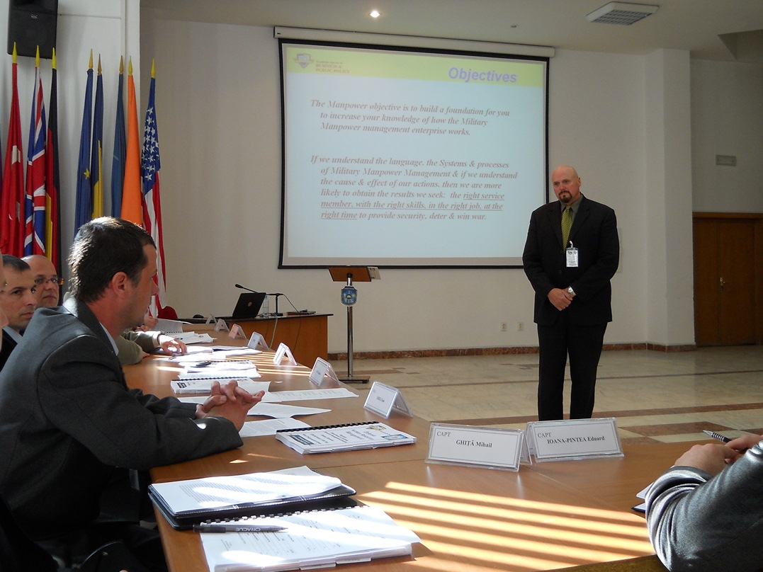 În perioada 10-12 aprilie 2013, DRESMARA a organizat în colaborare cu Şcoala Universitară de Afaceri şi Administraţie din cadrul Şcolii Navale de Studii Postuniversitare (NPS) de la Monterey – Statele Unite ale Americii seminarul „Managementul resurselor umane în domeniul apărării”. Seminarul a fost susţinut de domnul Comandor (r) William HATCH, director de programe educaţionale la NPS. La activitate au participat ofiţerii - studenţi de la cursul postuniversitar de perfecţionare „Managementul resurselor de apărare pentru specialişti”, personalul didactic al departamentului, experţi în domeniul managementului resurselor umane din cadrul categoriilor de forţe ale Ministerului Apărării Naţionale, personal didactic din Universitatea Naţională de Apărare „Carol I” şi Academia Forţelor Aeriene „Henri Coandă”. |