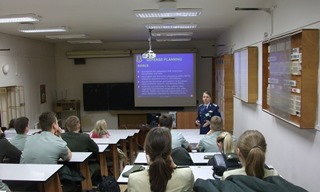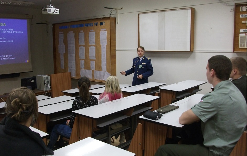 În perioada 24 - 27 Noiembrie 2014, domnul colonel prof. univ. dr. ing. Cezar VASILESCU a desfășurat activități didactice în cadrul programului ERASMUS - mobilităţi pentru personalul didactic, la Universitatea Națională de Apărare, Brno, Republica Cehă. Activitatea a avut ca scop principal împărtăşirea experienţei româneşti în domeniul studiului managementului resurselor de apărare cu personalul didactic al Facultăţii de leadership militar şi studenţii participanţi în programele educaţionale specifice. Reprezentantul DRESMARA a prezentat activitatea departamentului şi a purtat discuţii cu partenerii cehi în scopul identificării de noi experienţe, schimbului de bune practici în domeniul planificării, organizării și desfășurării cursurilor şi extinderii cooperării privind cercetarea ştiinţică. |