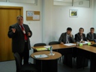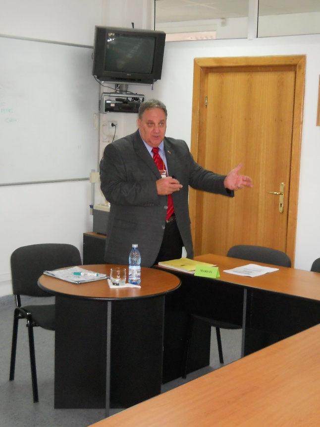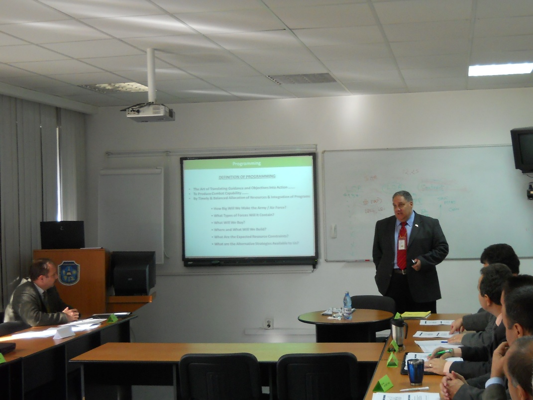 | În data de 05.11.2012, domnul Locotenent-colonel (r.) Hebert STEPHEN de la Oficiul pentru Cooperare Militară – CUBIC a susţinut o prelegere cu privire la Sistemul de Evaluare, Bugetare, Programare şi Planificare participanţilor la cursul de dezvoltare profesională „Managementul Resurselor pentru Apărare pentru personalul de conducere” organizat de DRESMARA. |