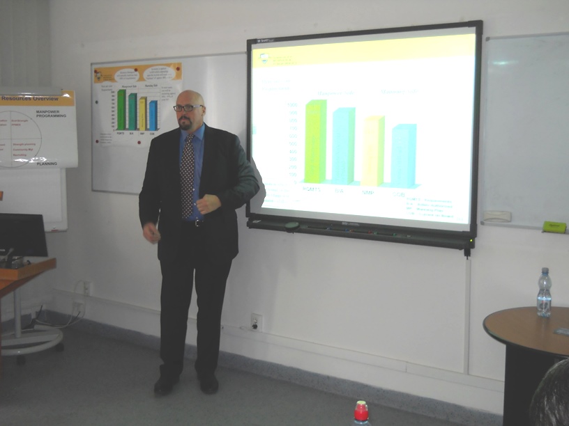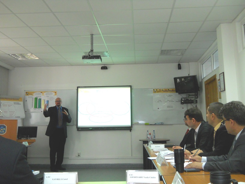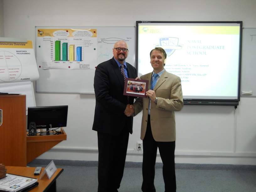 În perioada 28 - 29 mai 2015, DRESMARA a organizat în colaborare cu Şcoala Universitară de Afaceri şi Administraţie din cadrul Şcolii Navale de Studii Postuniversitare (NPS), Monterey – Statele Unite ale Americii, al patrulea seminar cu tema „Managementul resurselor umane în domeniul apărării”. Seminarul a fost susţinut de domnul Comandor (r) William HATCH, director de programe educaţionale la NPS. La activitate au participat personalul didactic al DRESMARA, personalul militar și civil participant la cursul postuniversitar de formare şi dezvoltare profesională continuă în domeniul „Managementul resurselor de apărare pentru personalul de conducere” - ACT 477.3, din România și țări partenere NATO – Egipt, Georgia, Pakistan și Tunisia. |
