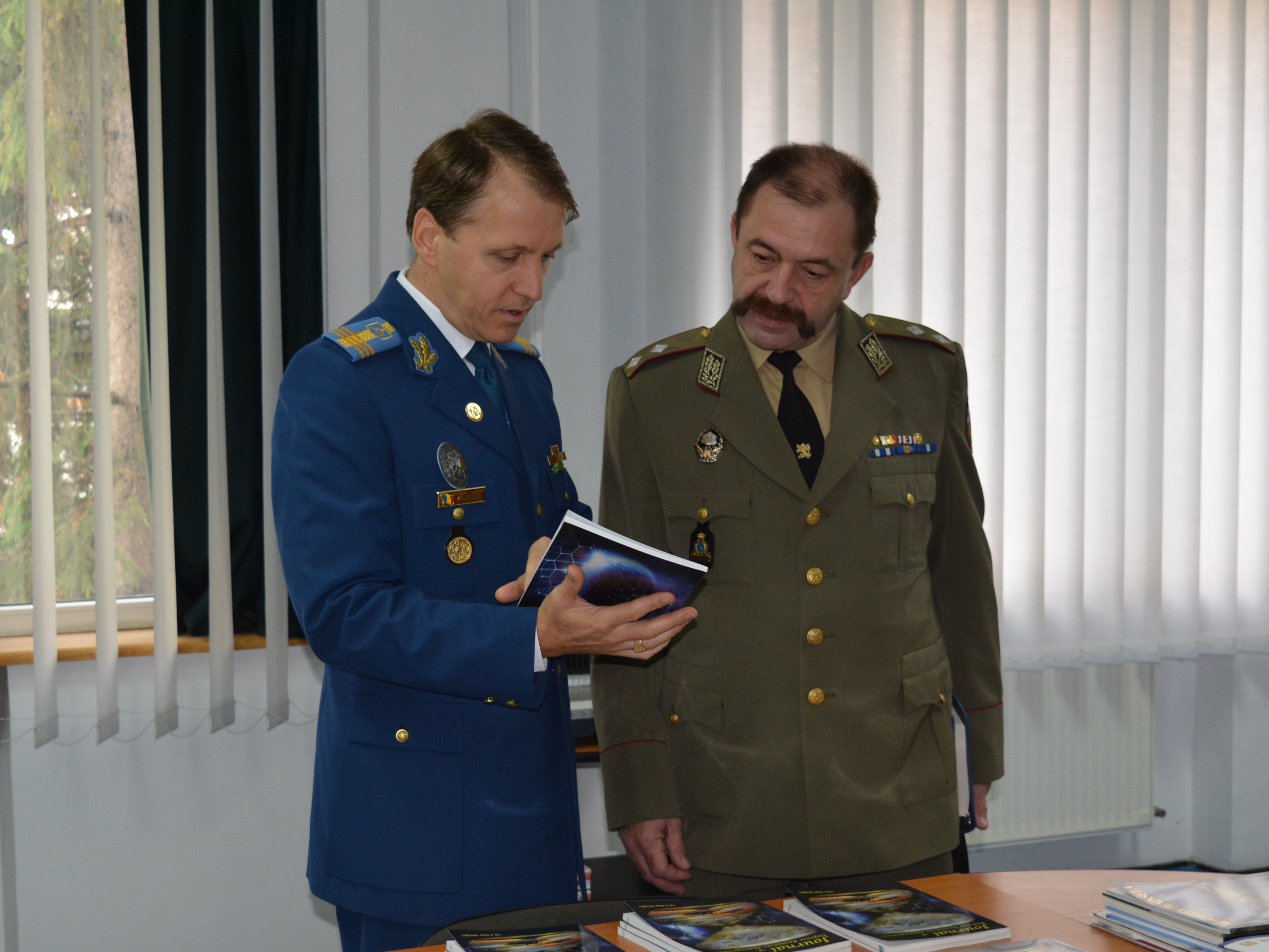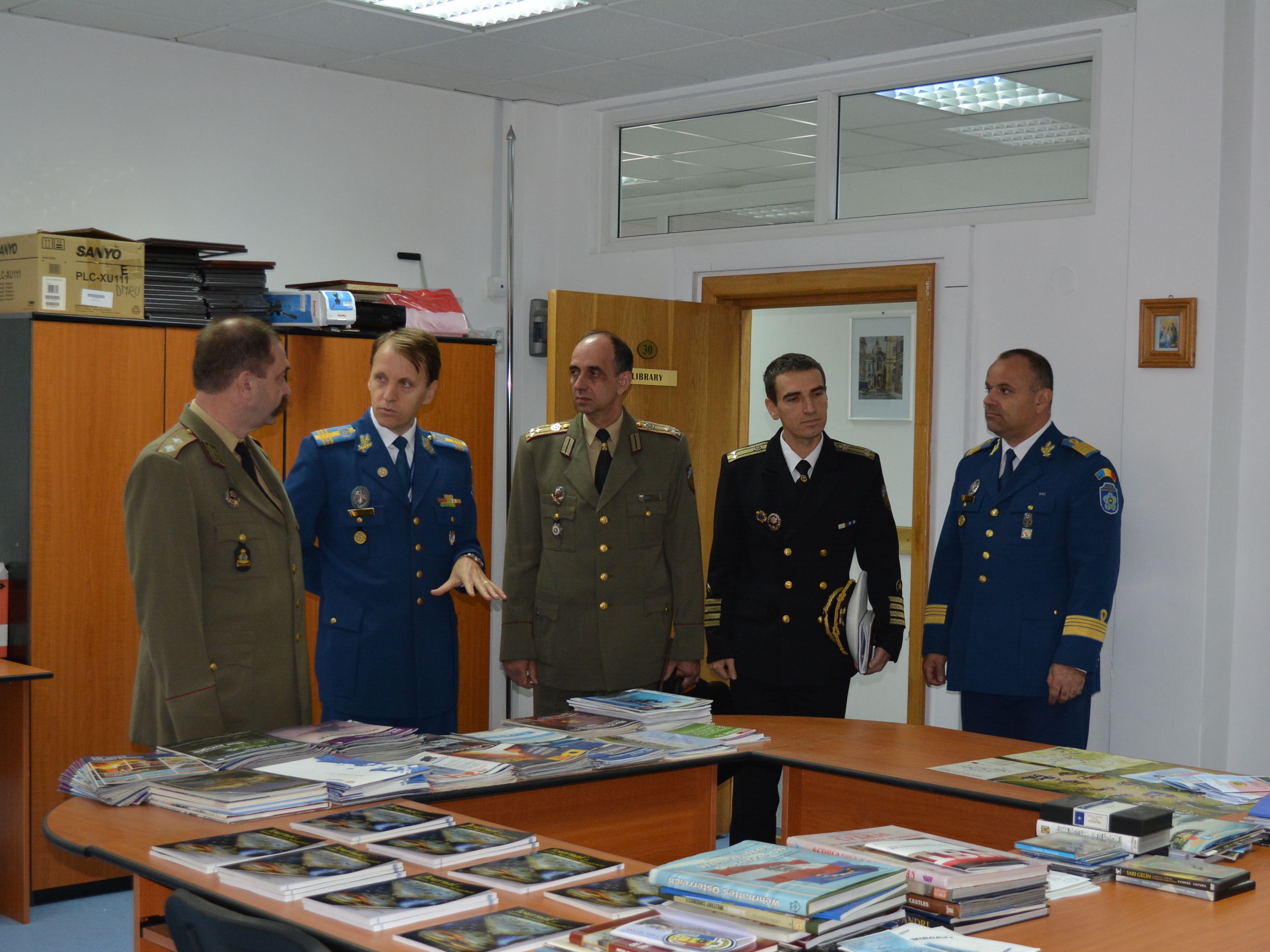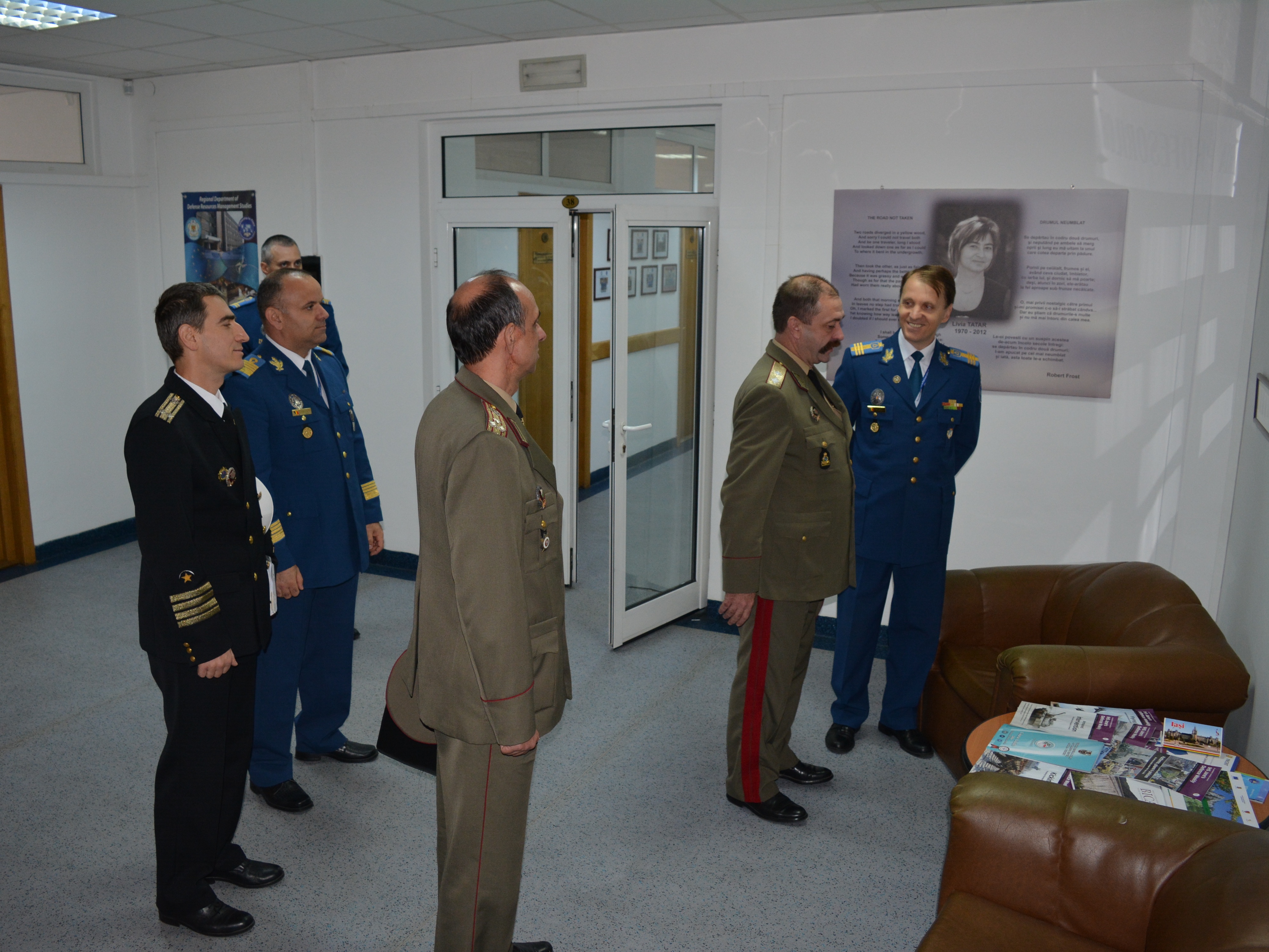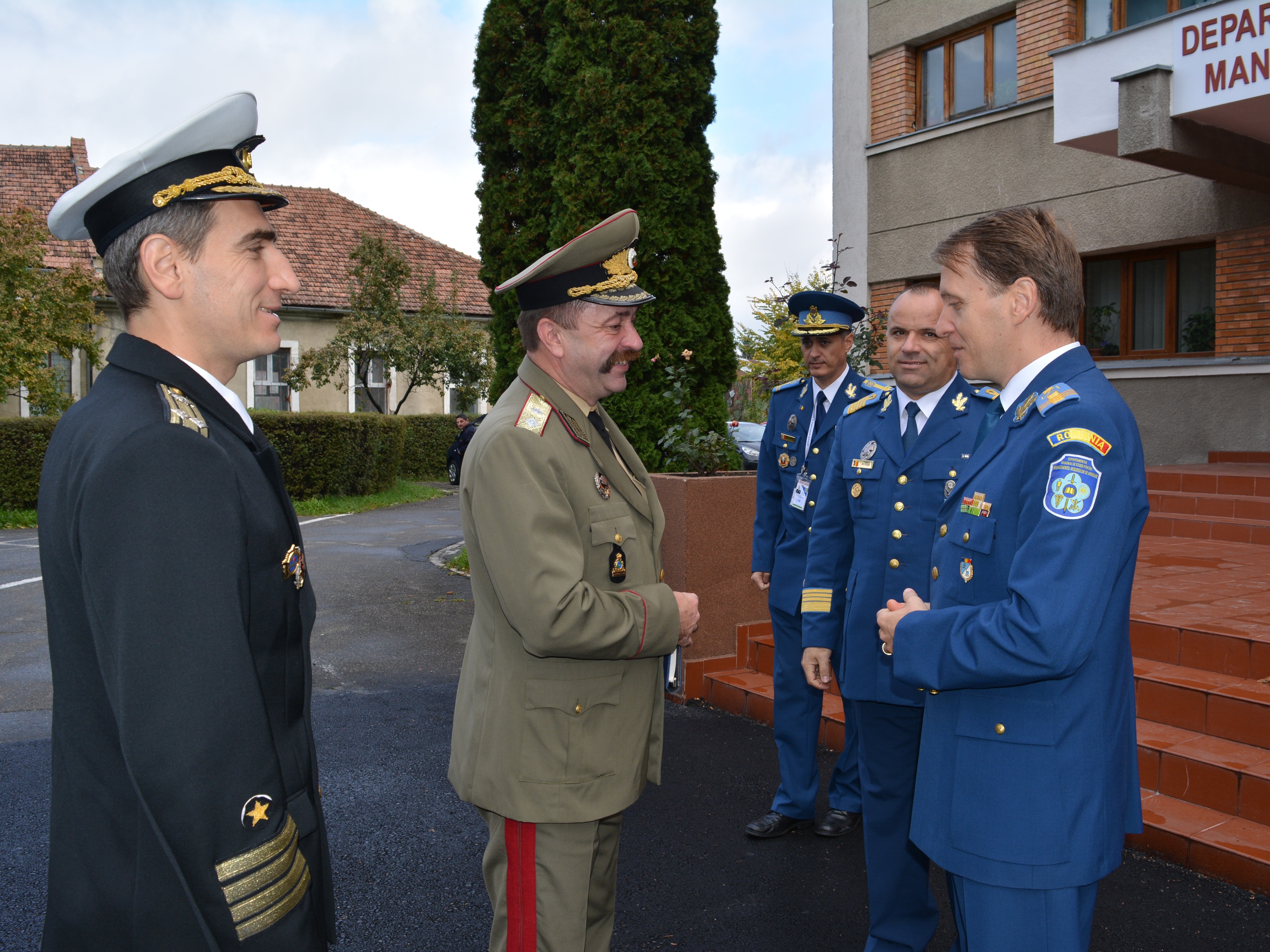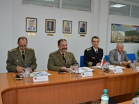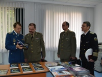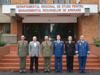 | În 21 octombrie 2015, o delegație a Academiei Naționale de Apărare din Republica Bulgaria, condusă de comandantul (rectorul) acesteia domnul General-Maior Todor TZONEV DOTCHEV, a efectuat o vizită oficială de informare la DRESMARA. Cu această ocazie directorul Departamentului Managementul Resurselor de Apărare, Col.prof.univ.dr. Cezar VASILESCU a prezentat instituția și realizările înregistrate în procesul educațional, reprezentanții bulgari fiind plăcut impresionați de nivelul educational al DRESMARA. |