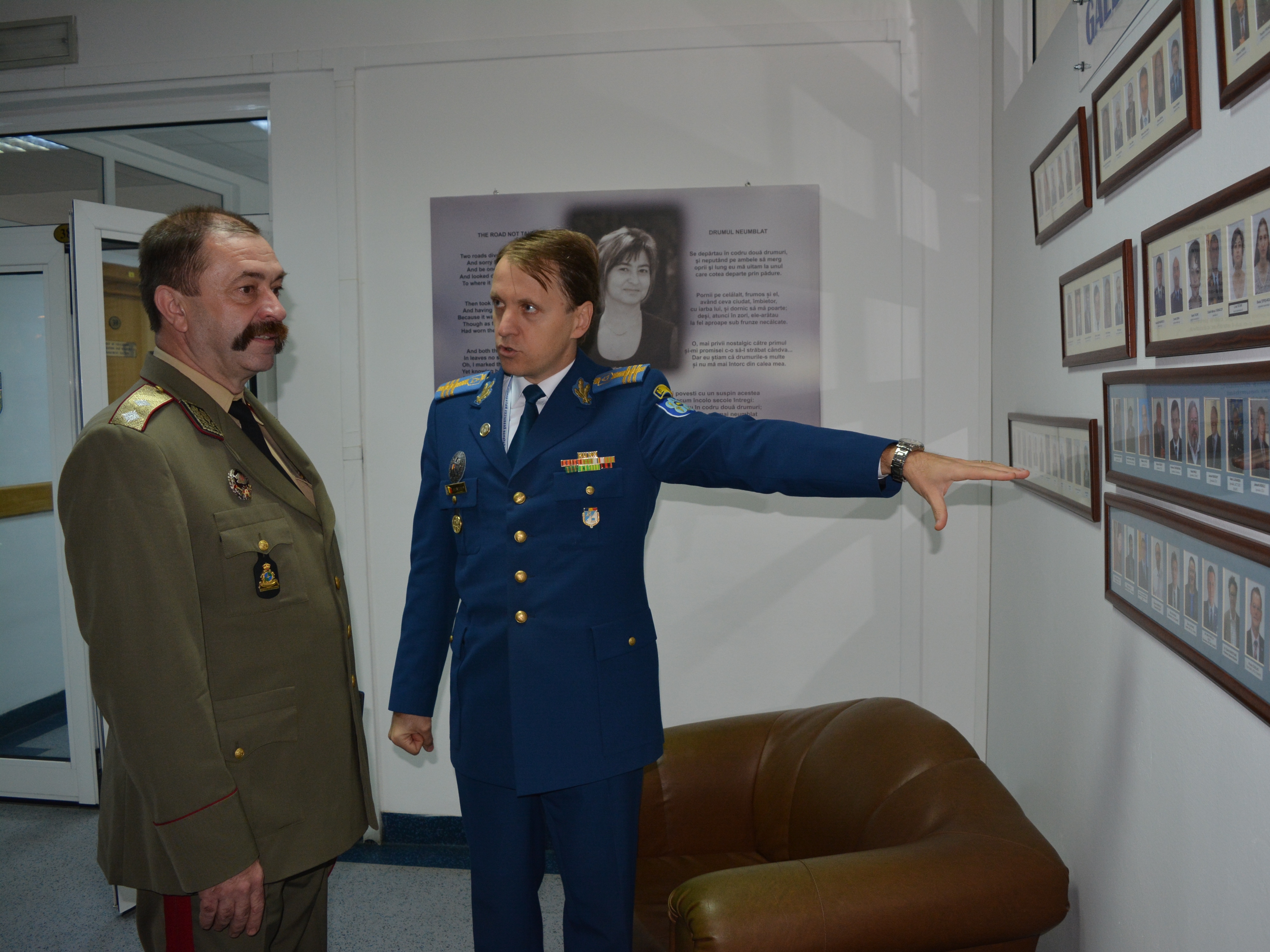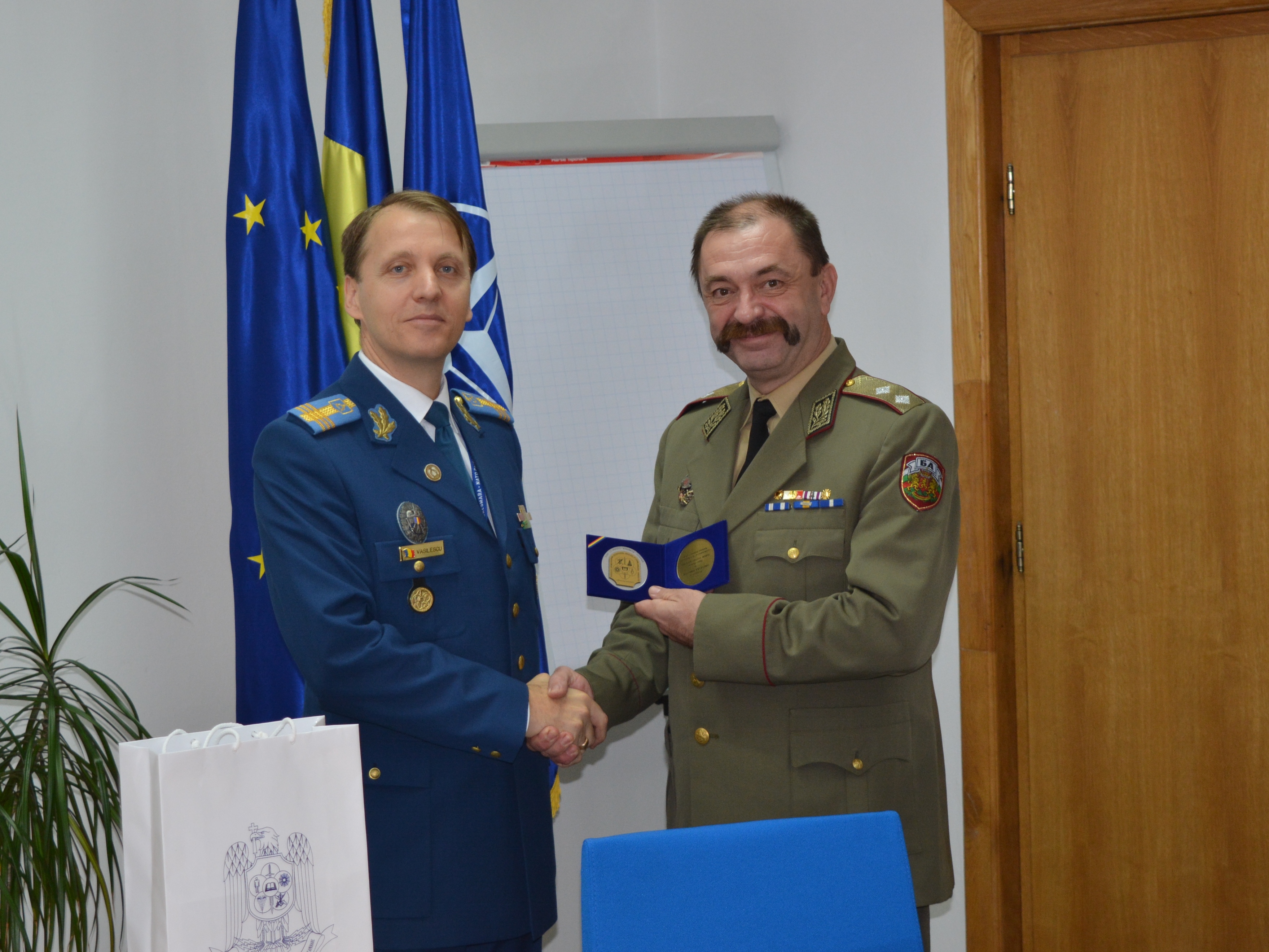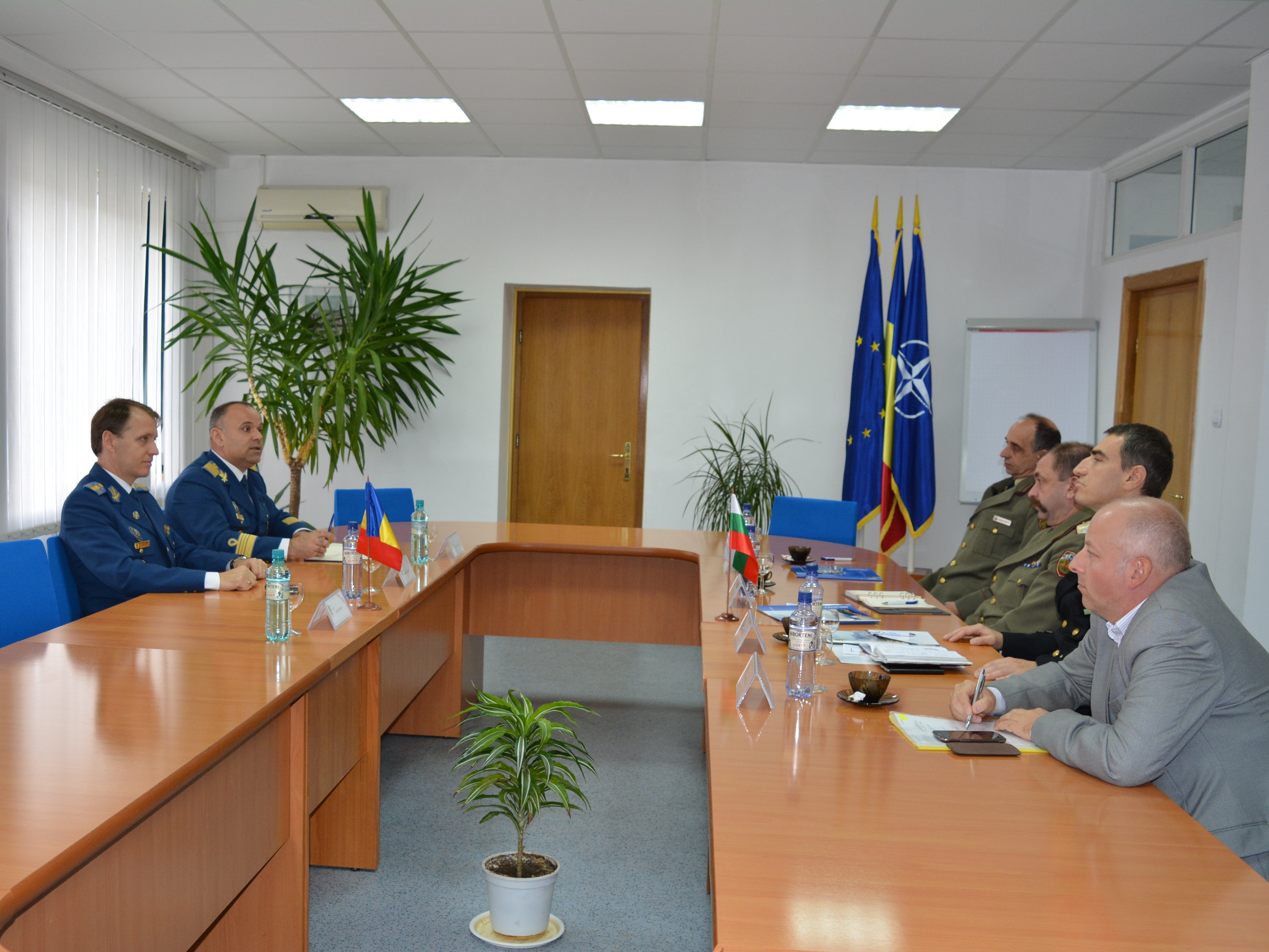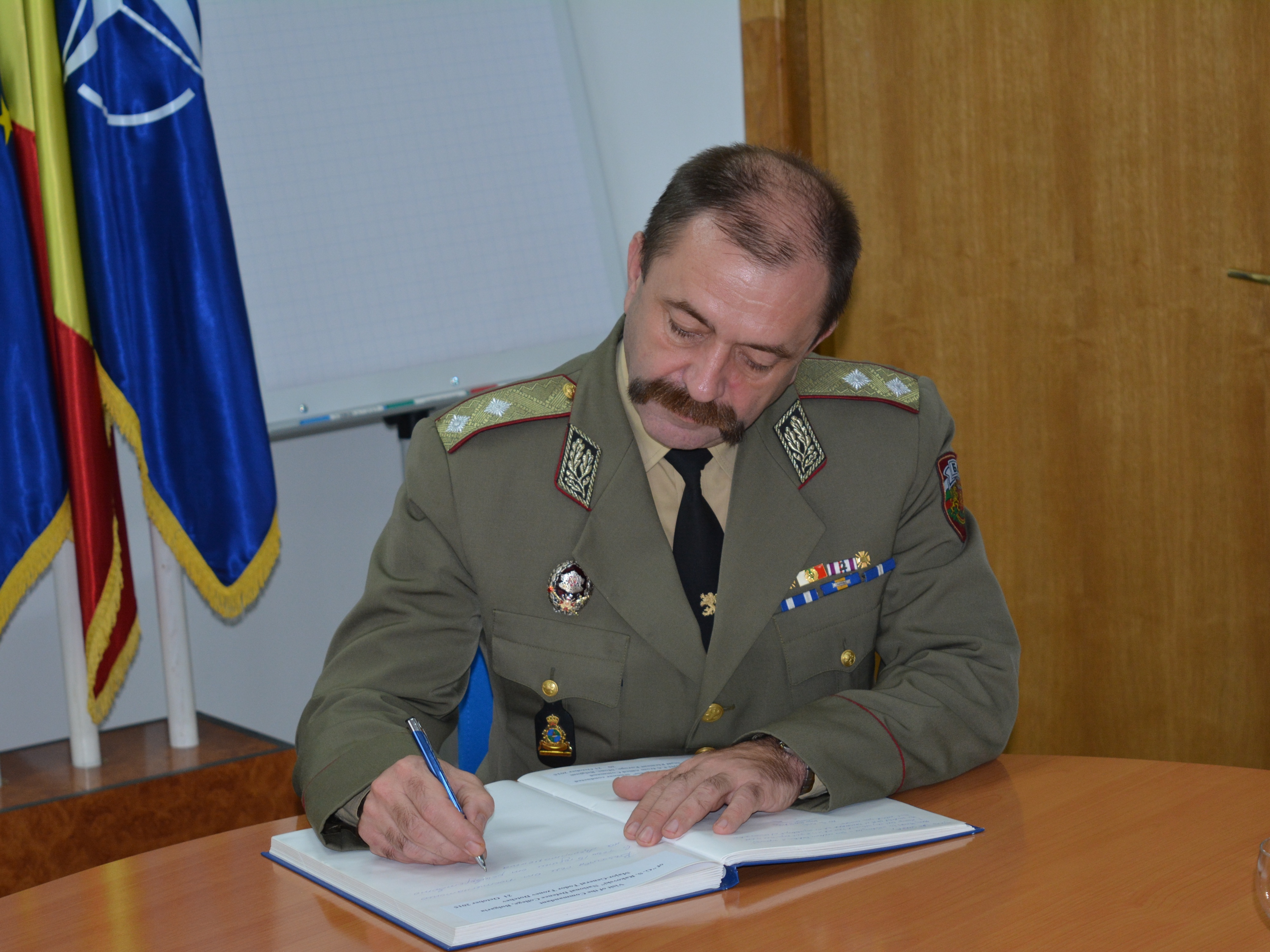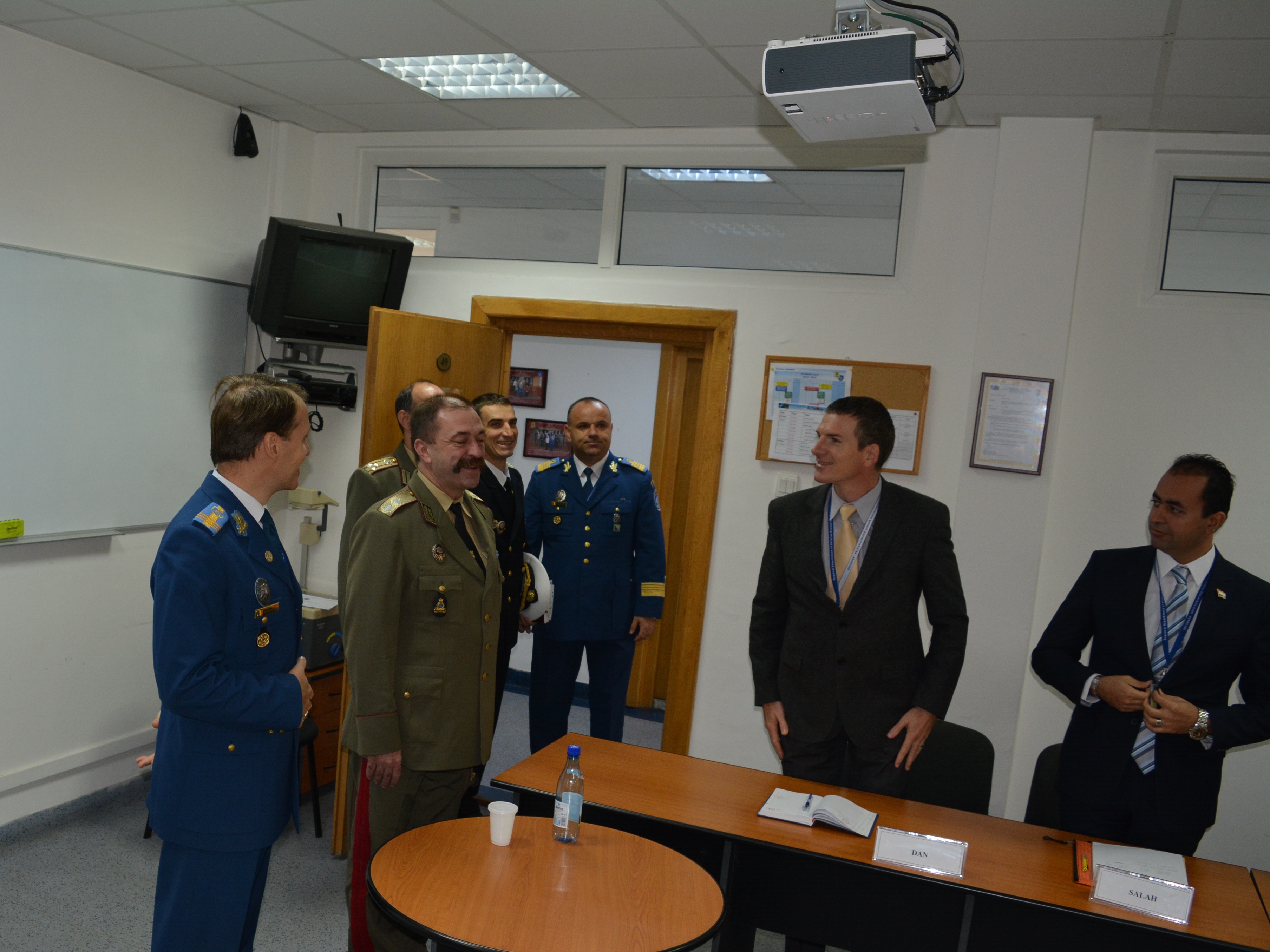 | În 21 octombrie 2015, o delegație a Academiei Naționale de Apărare din Republica Bulgaria, condusă de comandantul (rectorul) acesteia domnul General-Maior Todor TZONEV DOTCHEV, a efectuat o vizită oficială de informare la DRESMARA. Cu această ocazie directorul Departamentului Managementul Resurselor de Apărare, Col.prof.univ.dr. Cezar VASILESCU a prezentat instituția și realizările înregistrate în procesul educațional, reprezentanții bulgari fiind plăcut impresionați de nivelul educational al DRESMARA. |