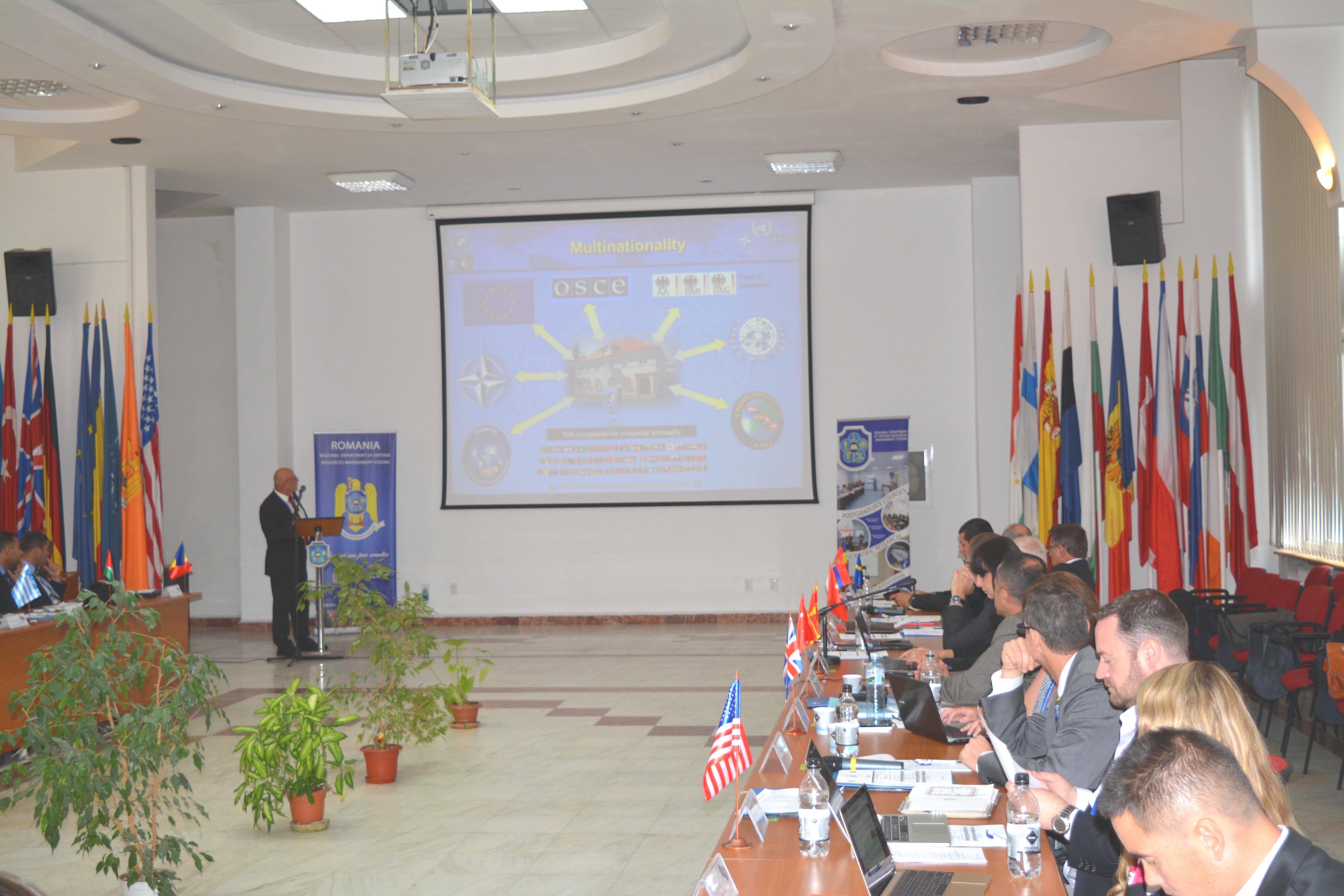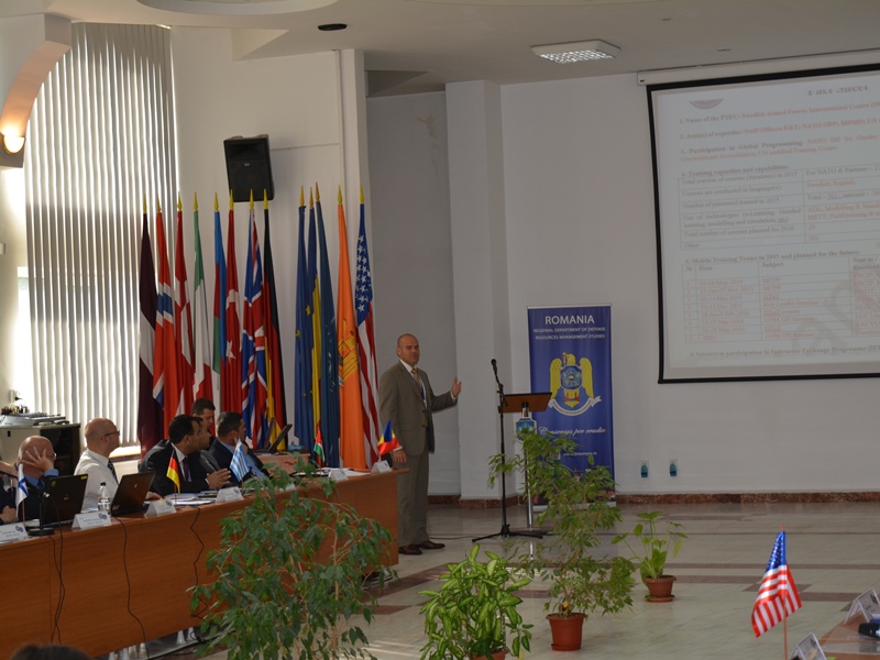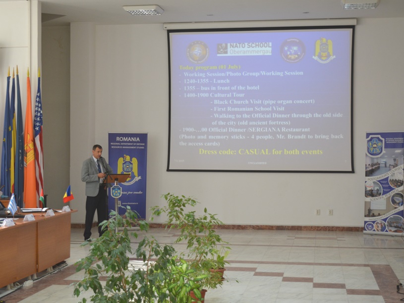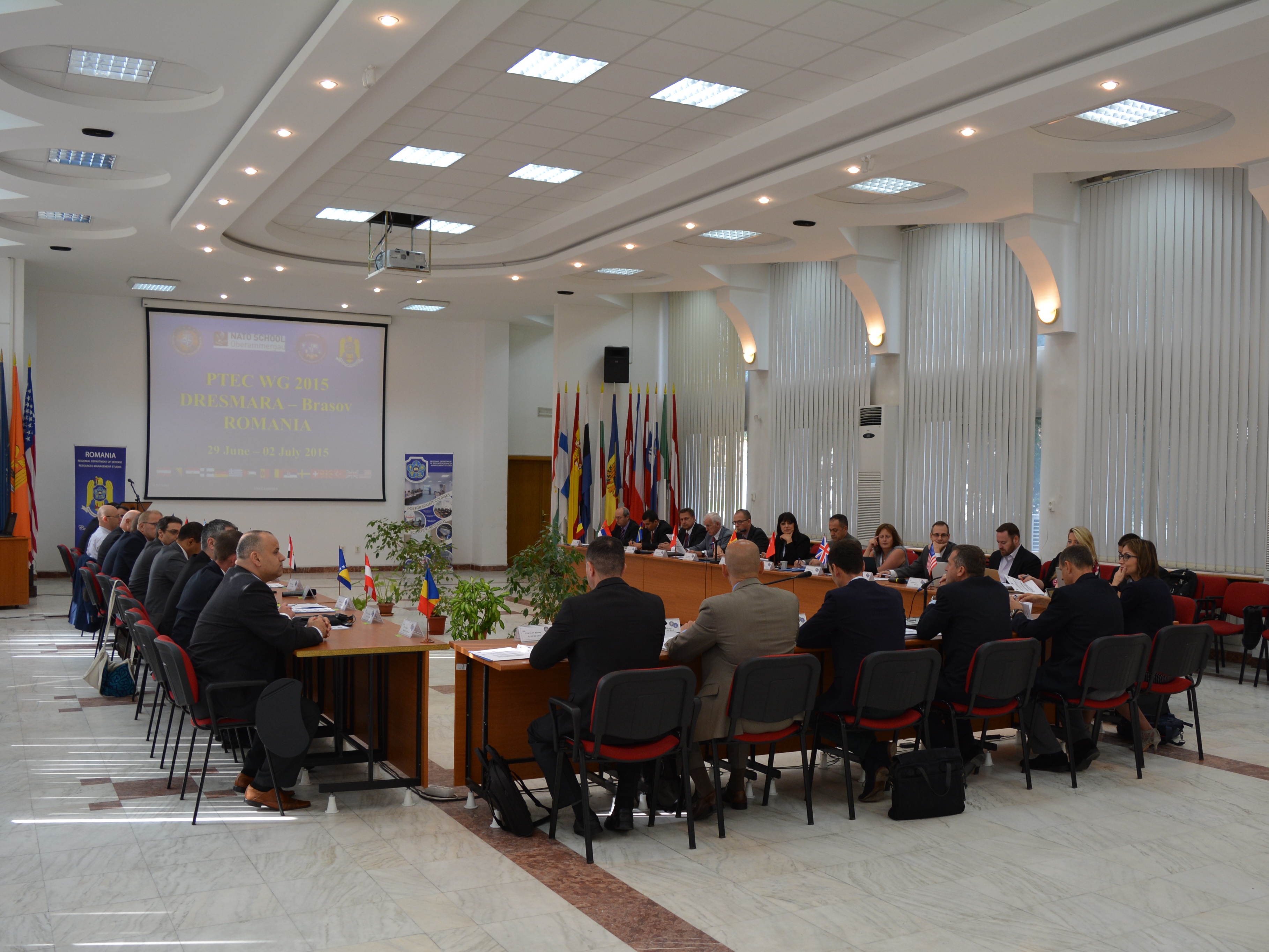 În perioada 29 iunie - 02 iulie 2015 Departamentul Regional de Studii pentru Managementul Resurselor de Apărare (DRESMARA) Braşov a găzduit lucrările Grupului de lucru al Centrelor de Educație și Instruire din Parteneriatul (PTEC) NATO, la care au participat 32 reprezentaţi din 17 ţări. La activitatea organizată de Comandamentul Suprem Aliat pentru Transformare - NATO HQ SACT și Şcoala NATO de la Oberammergau- GERMANIA, au participat 18 PTEC acreditate, ACT și Direcția pentru Parteneriat Militar. Activitatea grupului de lucru a constat în identificarea și valorificarea resurselor pentru dezvoltarea și consolidarea imaginii PTEC în cadrul NATO. Pe lângă discuţiile oficiale, oaspeţii au avut ocazia să viziteze și obiective turistice din zona Braşovului, ca parte integrantă a activităţii, pentru a se familiariza cu tradiţiile şi cultura românească din această frumoasă regiune a ţării noastre. La final, reprezentanţii NATO HQ SACT și ai Şcolii NATO au apreciat calitatea şi eficienţa discuţiilor, aportul deosebit adus de reprezentanții Centrelor PTC, precum şi de buna organizare și desfăşurare a lucrărilor. |
