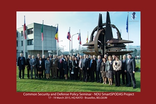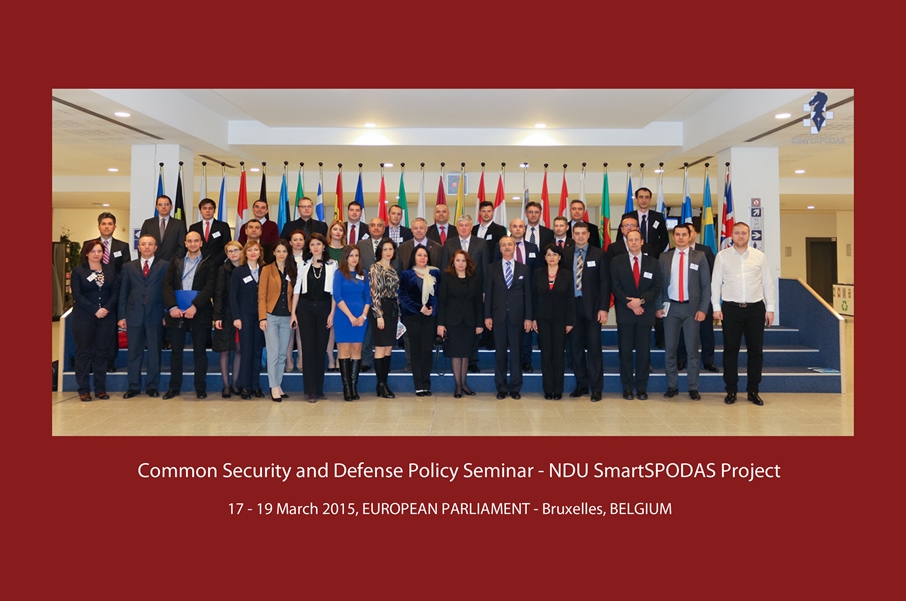| În perioada 16 - 20.03.2015, Colonel Cătălin ANTON a participat la Seminarul “Politica de Apărare și Securitate Comună”, desfășurat la Bruxelles, Belgia, în cadrul proiectului Universităţii Naţionale de Apărare “Carol I” - „Reţea transnaţională de management integrat al cercetării doctorale şi postdoctorale inteligente în domeniile „Ştiinţe militare”, „Securitate şi informaţii” şi „Ordine publică şi siguranţă naţională” – Program de formare continuă a cercetătorilor de elită – „SmartSPODAS”. |