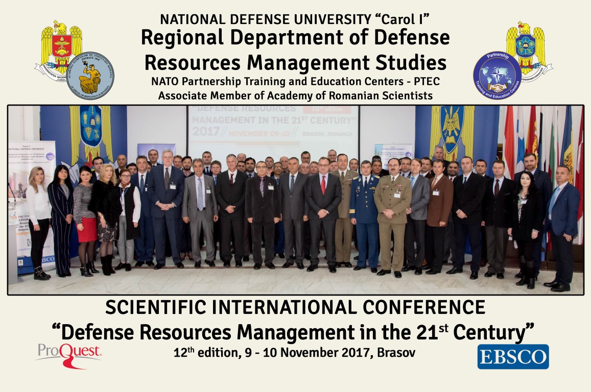 Departamentul Regional de Studii pentru Managementul Resurselor de Apărare (DRESMARA), în colaborare cu Secția Științe Militare a Academiei Oamenilor de Știință din România, Universitatea de Război din Polonia, Universitatea de Apărare din Cehia, Asociațiile „Political Research Group” și „Global Agora” și sub auspiciile Universității Naționale de Apărare „Carol I”, a organizat, în perioada 09-10 noiembrie, cea de-a XII-a ediție a Conferinței Internaționale Științifice „Managementul Resurselor de Apărare în secolul XXI”