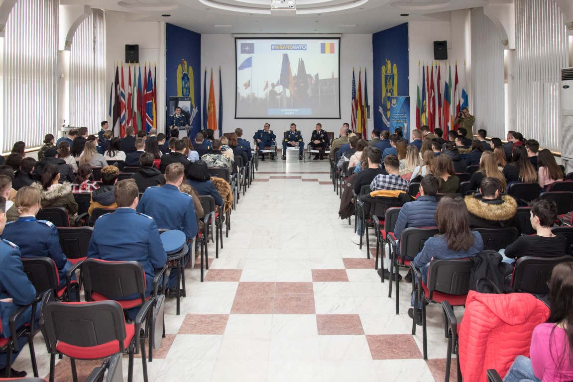 Evenimentul, desfășurat în aula DRESMARA, a constat din trei sesiuni de lucru pe teme de actualitate de pe agenda NATO: