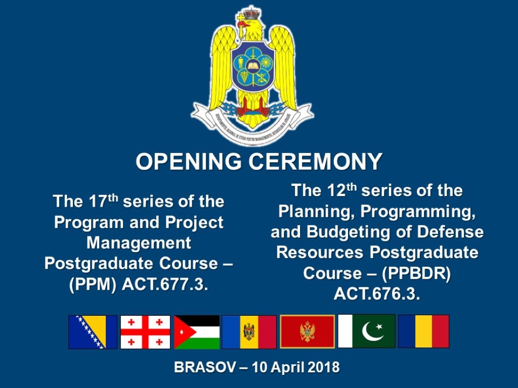 În data de 10.04.2018 a avut loc ceremonia de deschidere a cursurilor postuniversitare de formare și dezvoltare profesională continuă „Managementul Proiectelor și Programelor” – ACT 677.3. și „Planificarea, Programarea și Bugetarea Resurselor de Apărare” – ACT 676.3.