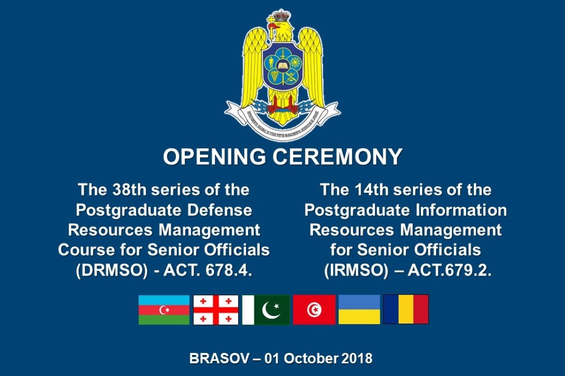 În data de 01.10.2018 a avut loc ceremonia de deschidere a celei de-a 38-a serii a cursului postuniversitar de formare și dezvoltare profesională continuă „Managementul Resurselor de Apărare pentru Personalul de Conducere” – ACT 678.4. și a celei de-a 14-a serii a cursului postuniversitar de formare și dezvoltare profesională continuă „Managementul Resurselor Informaționale pentru Personalul de Conducere” – ACT 679.2.
