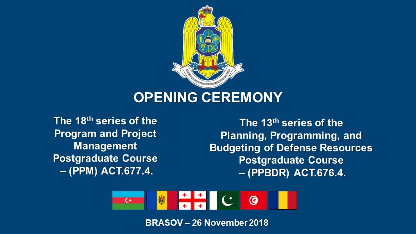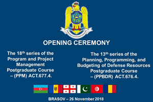 În data de 26.11.2018 a avut loc ceremonia de deschidere a celei de-a 18-a serii a cursului postuniversitar de formare și dezvoltare profesională continuă „Managementul Proiectelor și Programelor” – ACT 677.4. și a celei de-a 13-a serii a cursului postuniversitar de formare și dezvoltare profesională continuă „Planificarea, Programarea și Bugetarea Resurselor de Apărare” – ACT 676.4.
