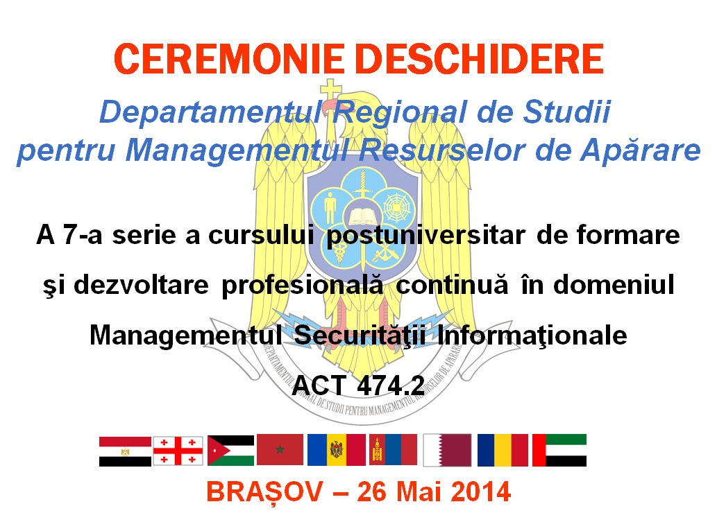 În data de 19.12.2014 a avut loc festivitatea de absolvire a celei de-a 10-a serii a cursului postuniversitar de formare și dezvoltare profesională continuă în domeniul “Managementul proiectelor şi programelor” - ACT 476.2, desfășurat în perioada 24.11 - 19.12.2014