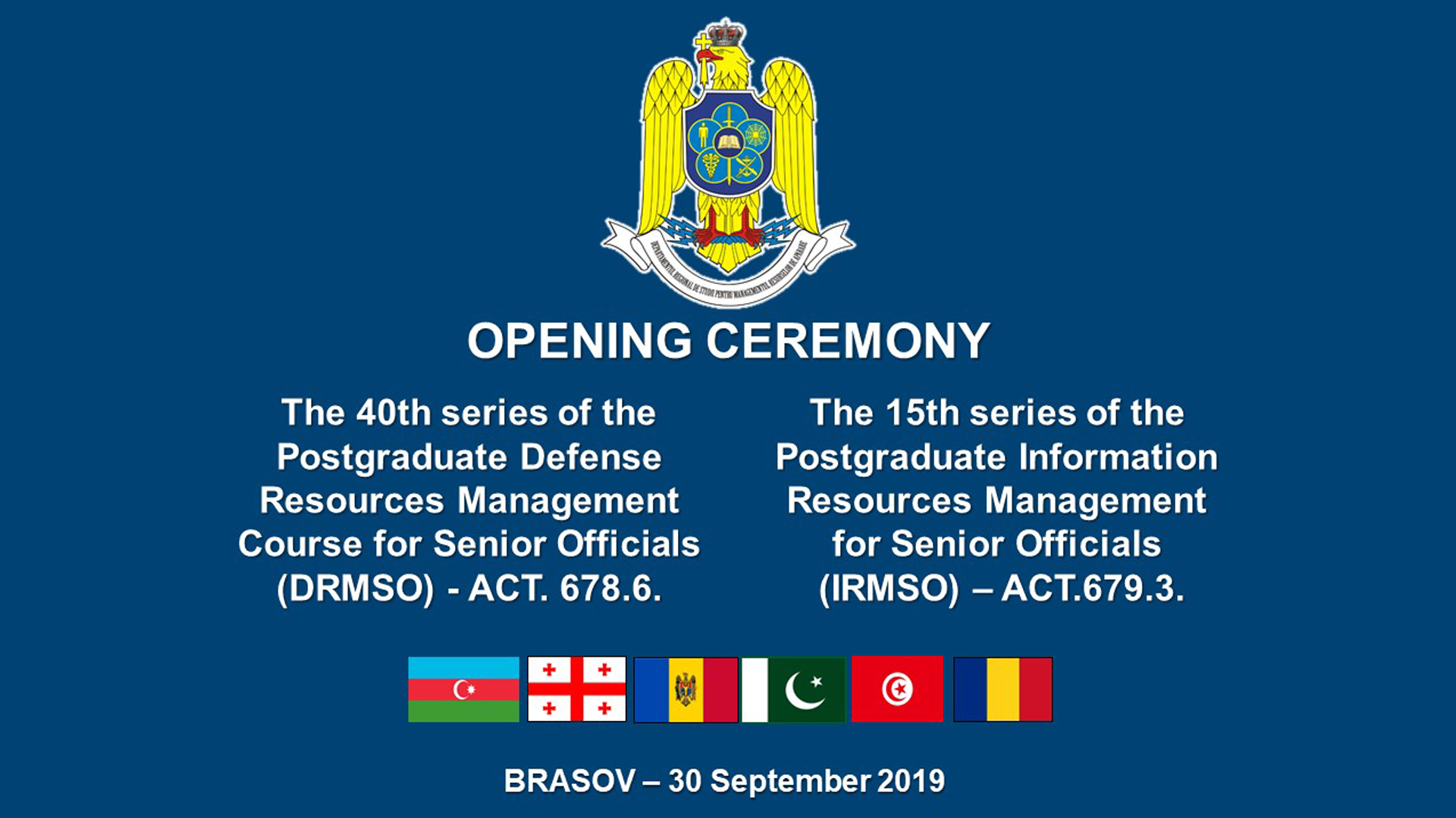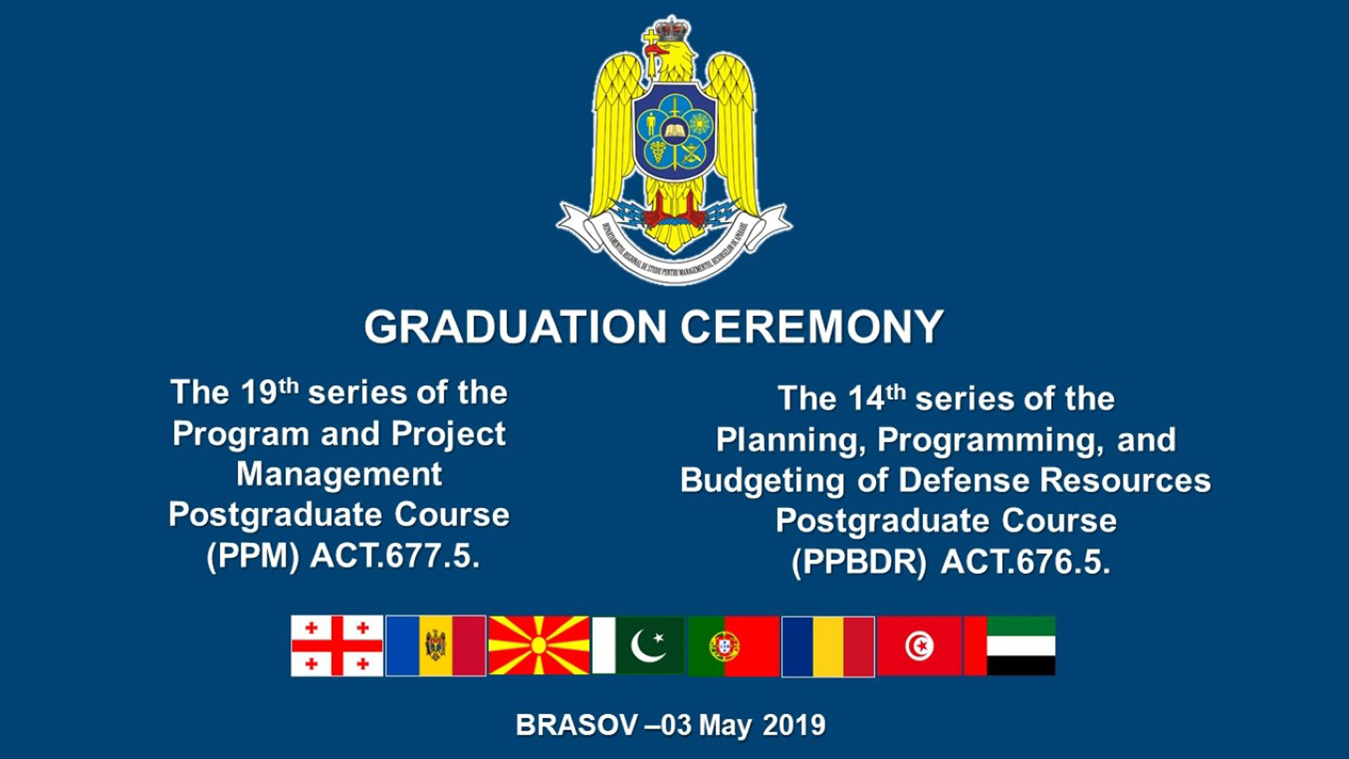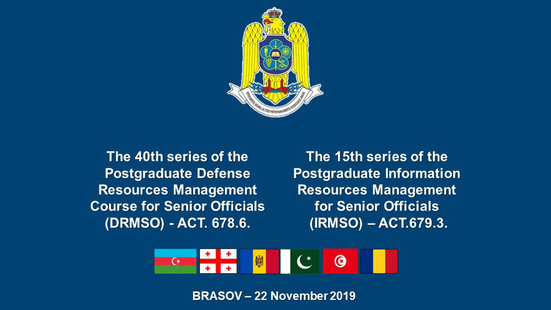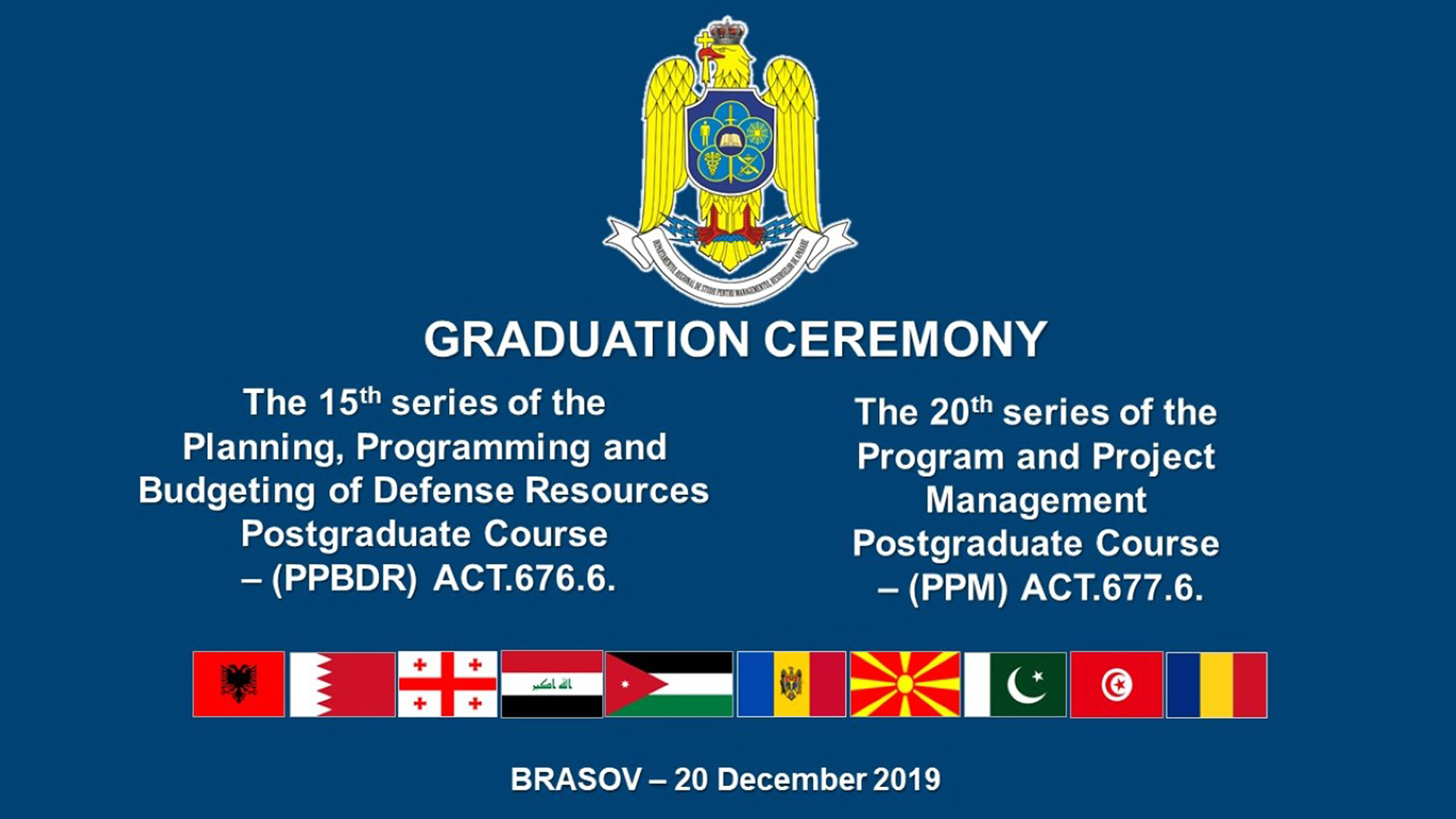 În data de 20.12.2019 a avut loc ceremonia de absolvire a cursurilor postuniversitare de formare și dezvoltare profesională continuă „Planificarea, Programarea și Bugetarea Resurselor de Apărare” – ACT 676.6., seria a 15-a și „Managementul Proiectelor și Programelor” – ACT 677.6., seria a 20-a...