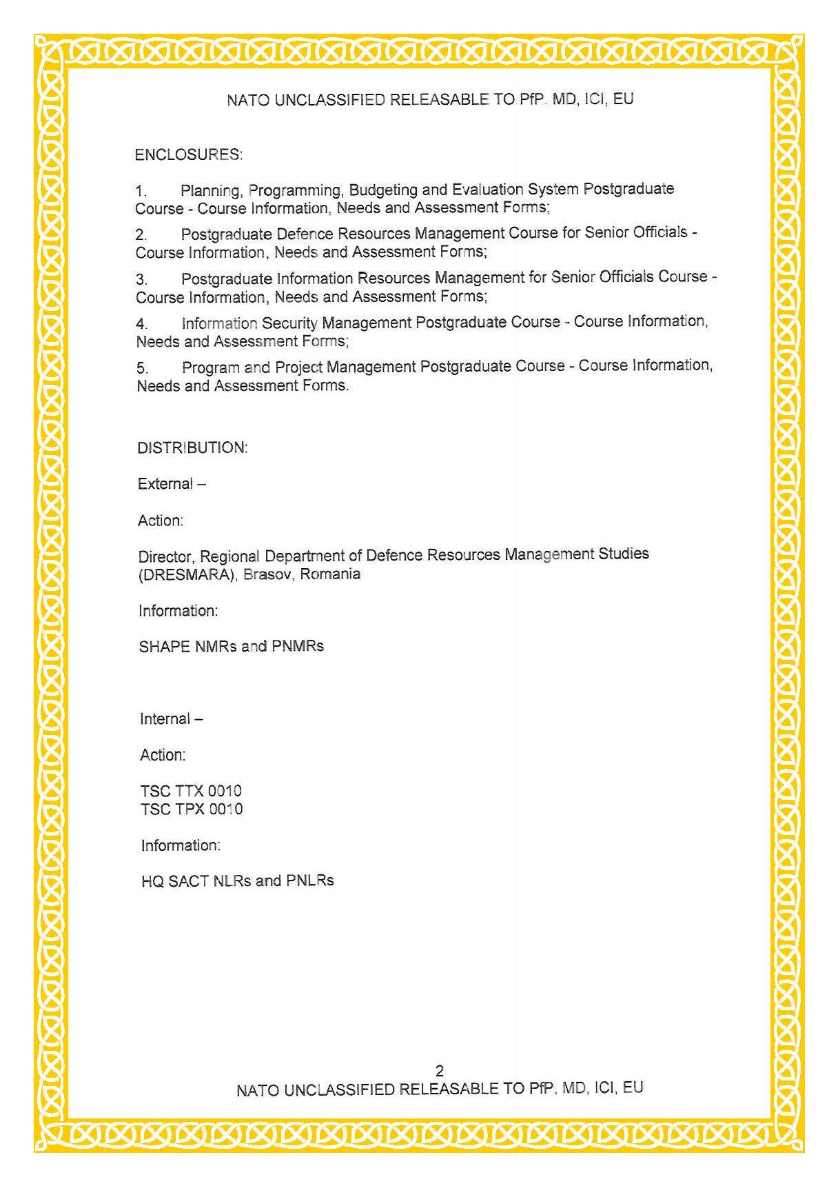 - includerea cursurilor în oferta educaţională a instituţiilor de educare şi instruire NATO.