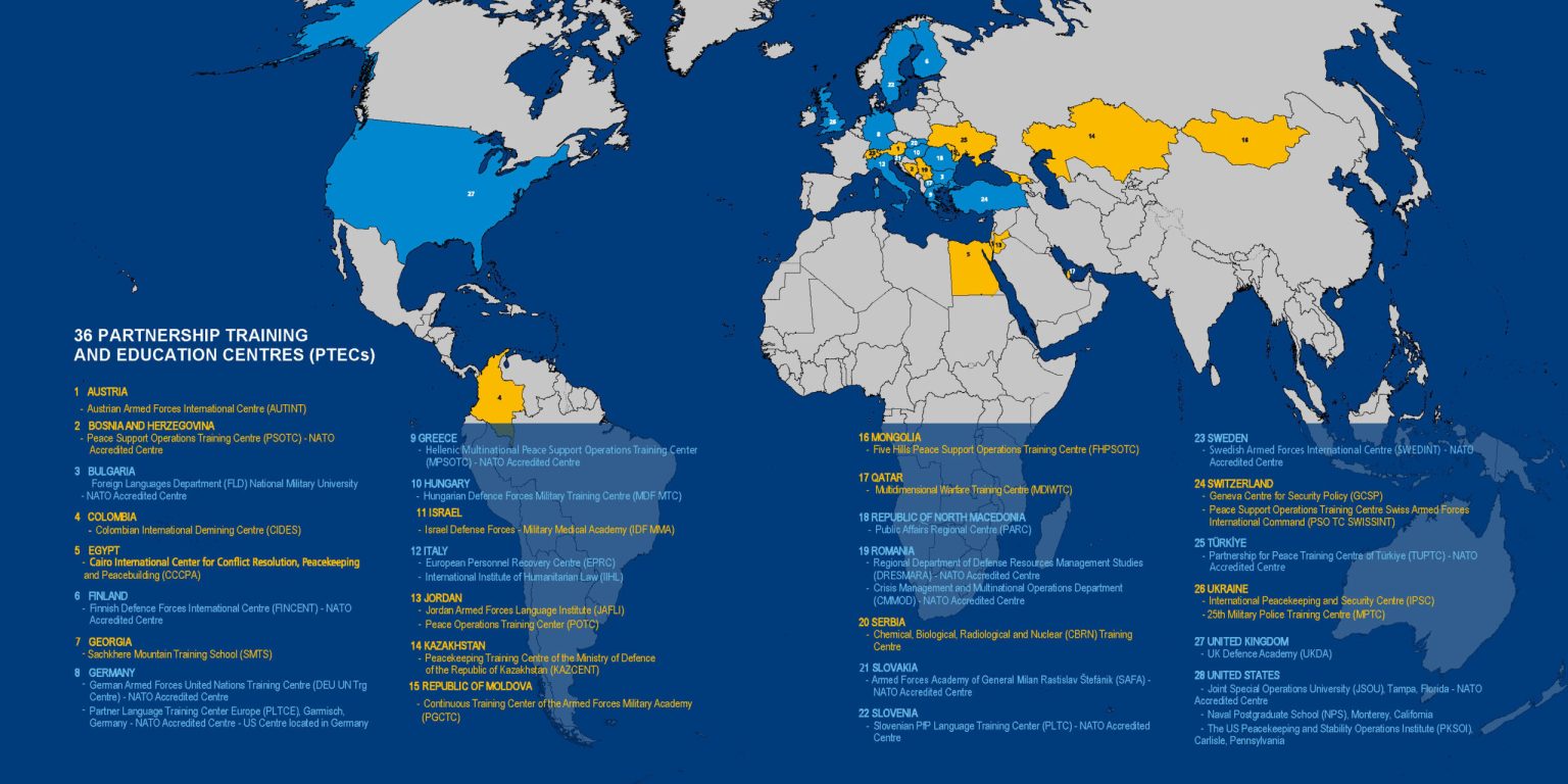 Centrele de educaţie şi instruire aparţinând parteneriatului NATO oferă cursuri pentru personal civil şi militar, seminarii şi grupuri de lucru cu caracter academic, programe de educaţie şi instruire în diverse domenii, conform obiectivelor şi priorităţilor stabilite prin politicile Alianţei Nord-Atlantice referitoare la parteneriate. De asemenea, centrele partenere oferă platforme de instruire cu caracter operaţional, punând la dispoziţie facilităţi pentru pregătirea teoretică şi practică sau alte resurse pentru exerciţii.
