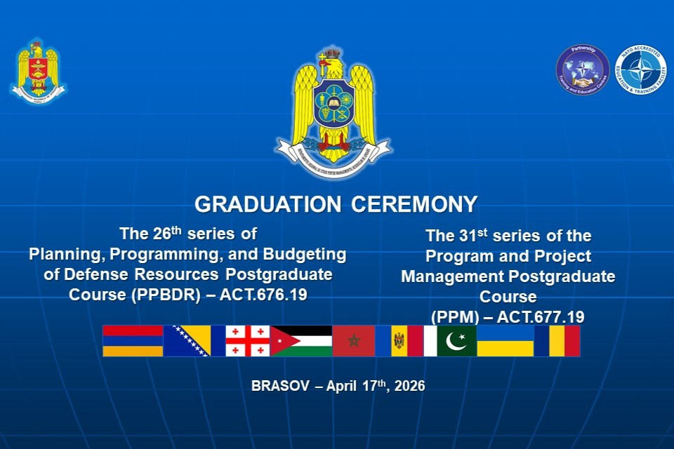 În data de 17 aprilie 2026 a avut loc ceremonia de absolvire a celei de-a XXVI-a serii a cursului postuniversitar de formare și dezvoltare profesională continuă „Planificarea, Programarea și Bugetarea Resurselor de Apărare” – ACT.676.19. și a celei de-a XXXI-a serii a cursului postuniversitar de formare și dezvoltare profesională continuă „Managementul proiectelor și programelor” – ACT 677.19.