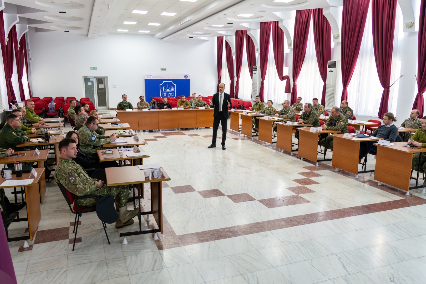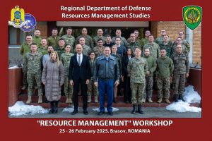 În perioada 25-26 februarie 2025, Departamentul Regional de Studii pentru Managementul Resurselor de Apărare a primit vizita domnului Georgios MAVRIKIS din Comandamentul Aliat pentru Operații/Comandamentul Suprem al Forțelor Aliate din Europa (SHAPE), în calitate de specialist invitat (Subject Matter Expert/SME) care a susținut prelegeri despre managementul resurselor în NATO la cursul postuniversitar de formare şi dezvoltare profesională continuă „Managementul Resurselor de Apărare pentru Specialiști”, ACT 715.9.