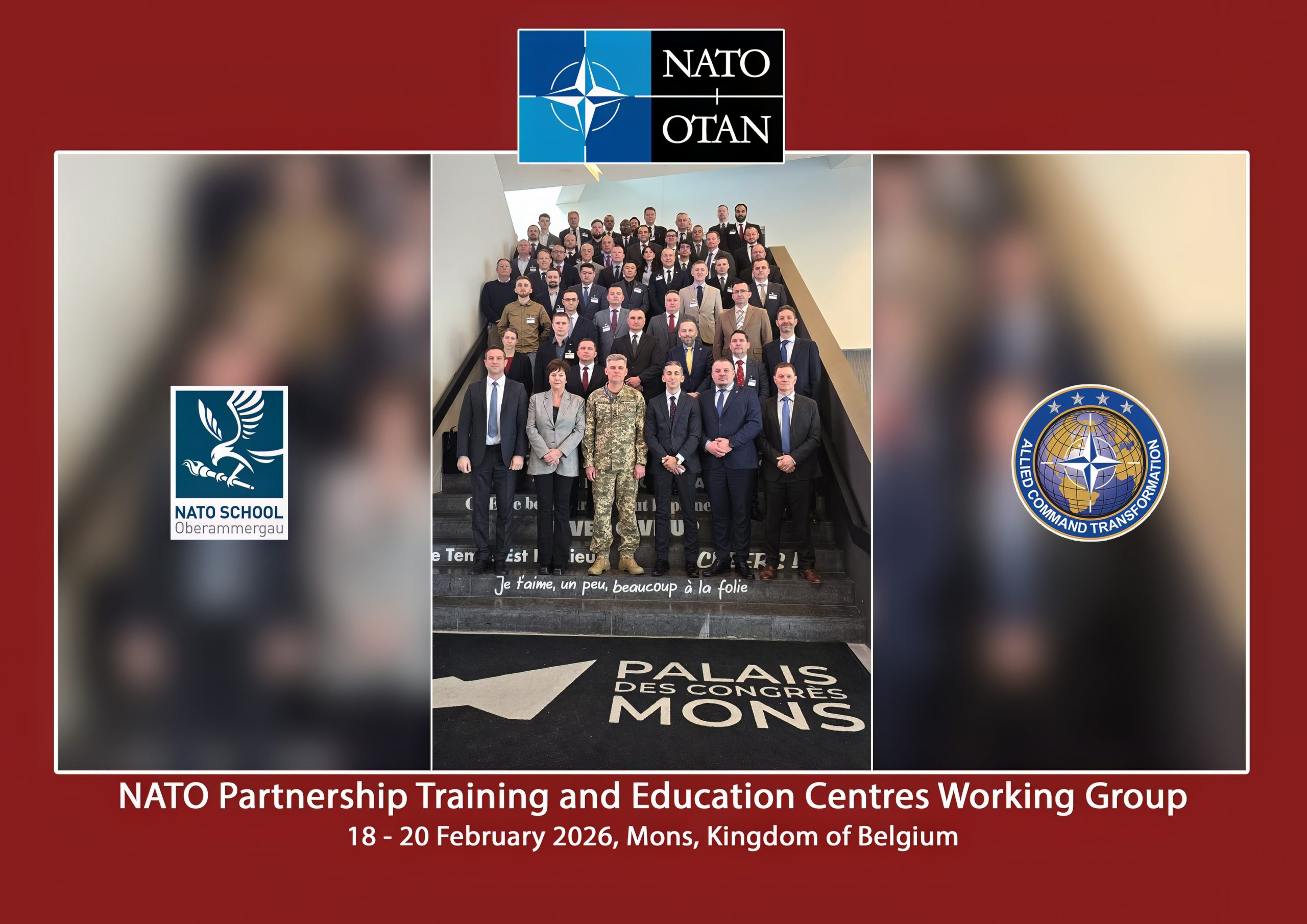 În perioada 18-20.02.2026, domnul Maior LUCHIAN Răzvan, șeful Biroului organizare învăţământ, secretariat, relaţii publice şi internaţionale, a participat la Grupul de lucru ale Centrelor de Educaţie şi Instruire din Parteneriatul NATO – NATO Partnership Training and Education Centres Working Group (PTECs WG), organizat de Supreme Allied Commander Transformation/HQ SACT și Școala NATO de la Oberammergau (NATO School Oberammergau/NSO), la Mons, Regatul Belgiei.