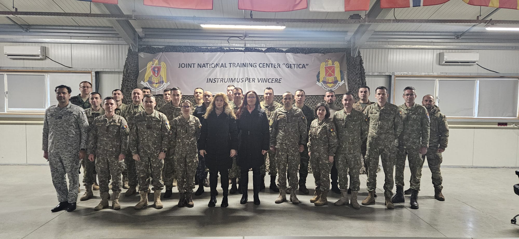 Participanții la cursul postuniversitar de formare și dezvoltare profesională continuă „Managementul resurselor de apărare pentru specialiști” – ACT 715.10. – personal militar și civil din statele partenere NATO și Ministerul Apărării Naționale, însoțiți de cadre didactice din DRESMARA, au desfășurat o vizită de documentare la Centrul Național de Instruire Întrunită „Getica”, din cadrul Statului Major al Forțelor Terestre, garnizoana Cincu, în data de 24.02.2026.