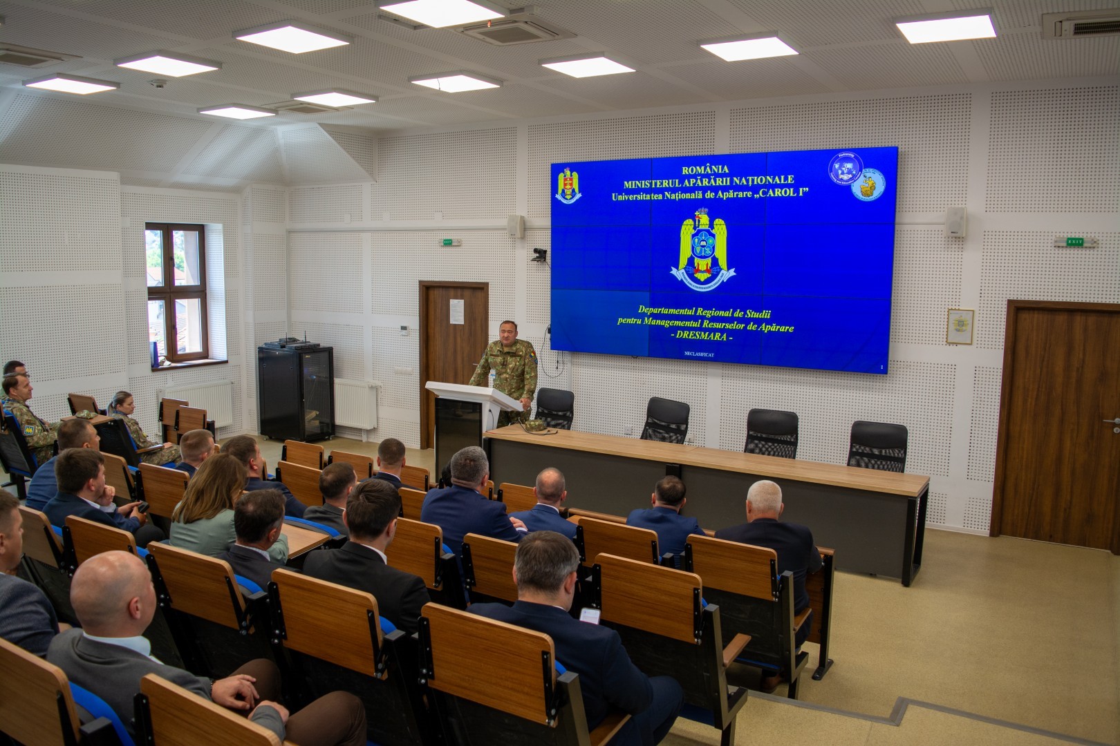 În data de 21 mai 2025, cadre didactice și participanții la programul de formare profesională continuă „Servicii ale securității (Probleme actuale ale securității naționale)” din cadrul Academiei Militare a Forțelor Armate „Alexandru cel Bun” din Chișinău, Republica Moldova, însoțiți de cadre militare din Academia Forțelor terestre „Nicolae Bălcescu”, au efectuat o vizită de informare-documentare în Departamentul Regional de Studii pentru Managementul Resurselor de Apărare (DRESMARA). Activitatea, condusă de directorul DRESMARA, domnul Colonel prof.univ.dr. Florin-Eduard GROSARU, a constat în vizitarea și prezentarea instituției.