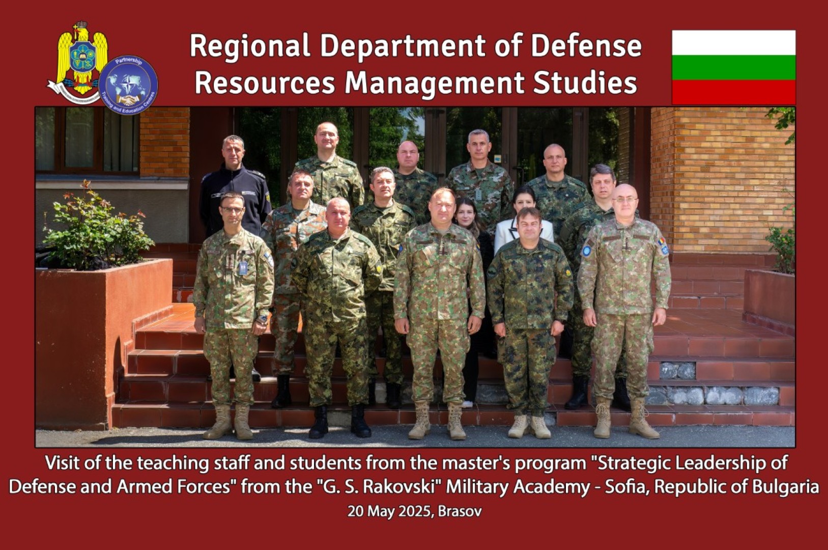 În data de 20 mai 2025, cadre didactice și cursanți de la programul de masterat „Conducerea strategică a apărării și a forțelor armate” din cadrul Academiei Militare „G. S.  Rakovski” din Sofia, Republica Bulgaria, însoțiți de specialiști ai Biroului cooperare internațională din Universitatea Națională de Apărare „Carol I”, au efectuat o vizită de informare-documentare în Departamentul Regional de Studii pentru Managementul Resurselor de Apărare (DRESMARA). Activitatea, condusă de directorul DRESMARA, domnul Colonel prof.univ.dr. Florin-Eduard GROSARU, a constat în vizitarea și prezentarea instituției.